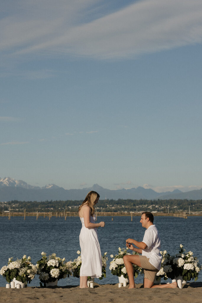 Photographers often recommend proposing around sunset (golden hour) because the light is soft, warm, and incredibly flattering. It also helps create a natural, romantic atmosphere without needing anything extra.
